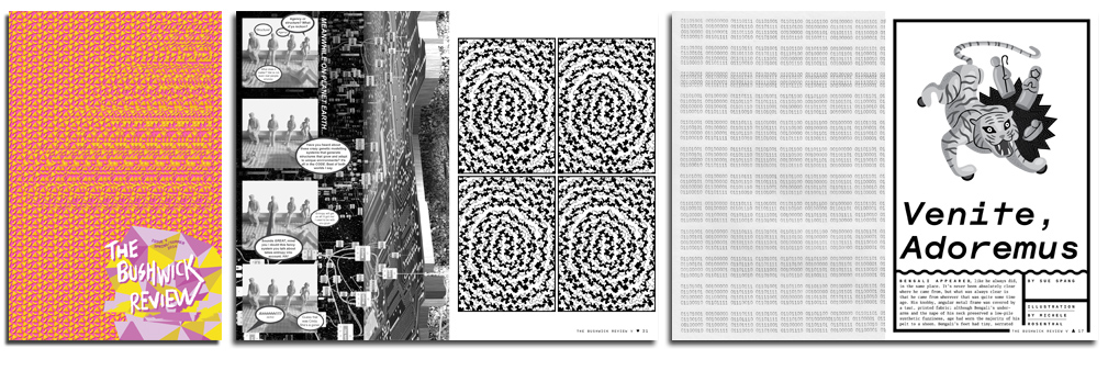The Bushwick Review V is now available. It features a magic eye cover, short stories, tarot cards, poems, collages, a misleading advertisement, architecture, and much more. The theme is code. It is $5